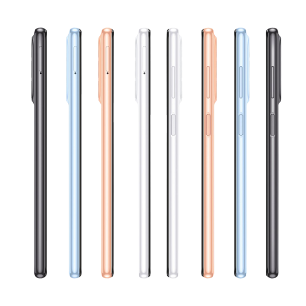 The Samsung Galaxy A23 Ambient Edge design connects the camera with the body seamlessly with simple but refined curves. The slim and symmetric Galaxy A23 comes in Black, White, Blue, and Peach colors.